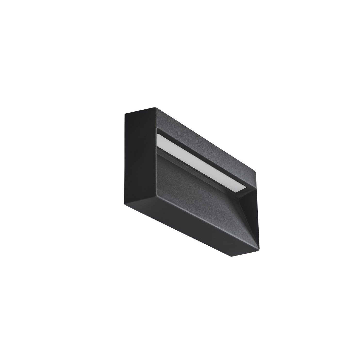CASORIA SLIM IP54 to prostokątna oprawka z trwałego metalu w kolorze ciemnoszarym, w której centrum umieszczono pojedyncze zintegrowane źródło światła LED, okryte osłoną z tworzywa sztucznego.