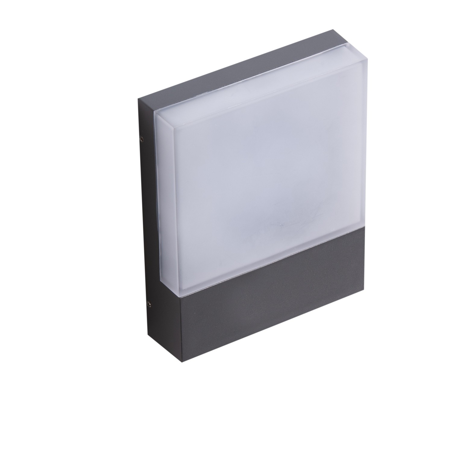 Lampa zewnętrzna CIVITA IP54 składa się z niewielkiej, kwadratowej płytki metalowej (kolor ciemnoszary), do której z przodu przytwierdzono zintegrowane źródło światła LED, okryte akrylową, mlecznobiałą osłoną, przyjemnie rozpraszającą światło.