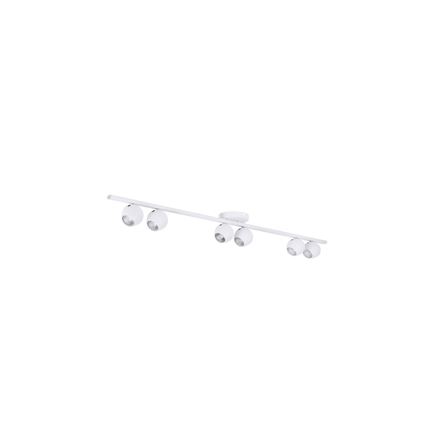 Pera 6 składa się z sześciu źródeł światła w kulistych oprawach, rozmieszczonych w grupach po dwa na długiej listwie. Całość wykonano z trwałego i odpornego na uszkodzenia metalu (w tym aluminium). W naszej ofercie występuje w dwóch praktycznych wersjach kolorystycznych – jednolicie czarnej lub białej.