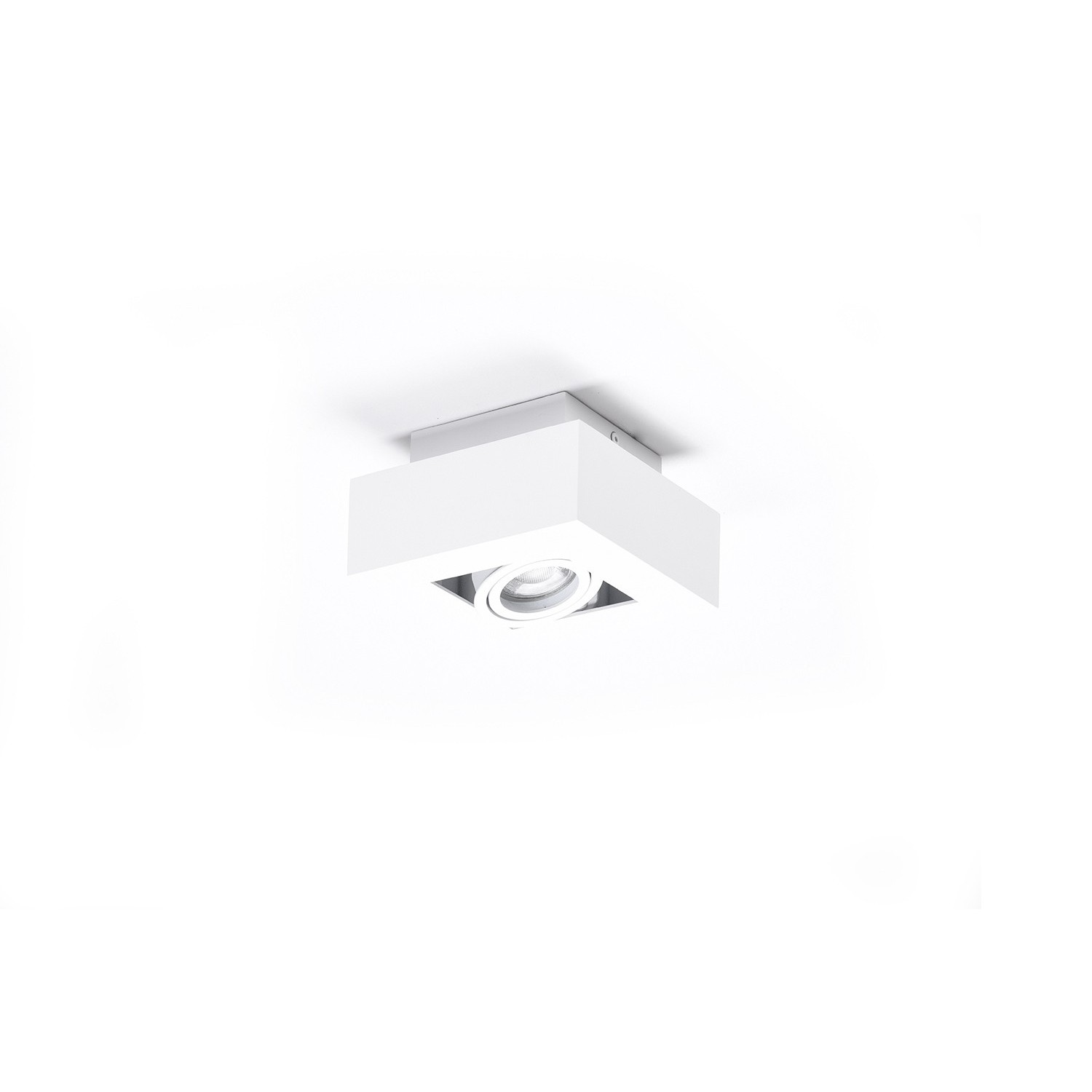 NIKEA 1 GU10 składa się z kwadratowej, gładkiej oprawki, w której centrum znajduje się pojedyncze, ruchome źródło światła. Całość konstrukcji wykonano z trwałego metalu w kolorze białym, czarnym lub czarno-białym.