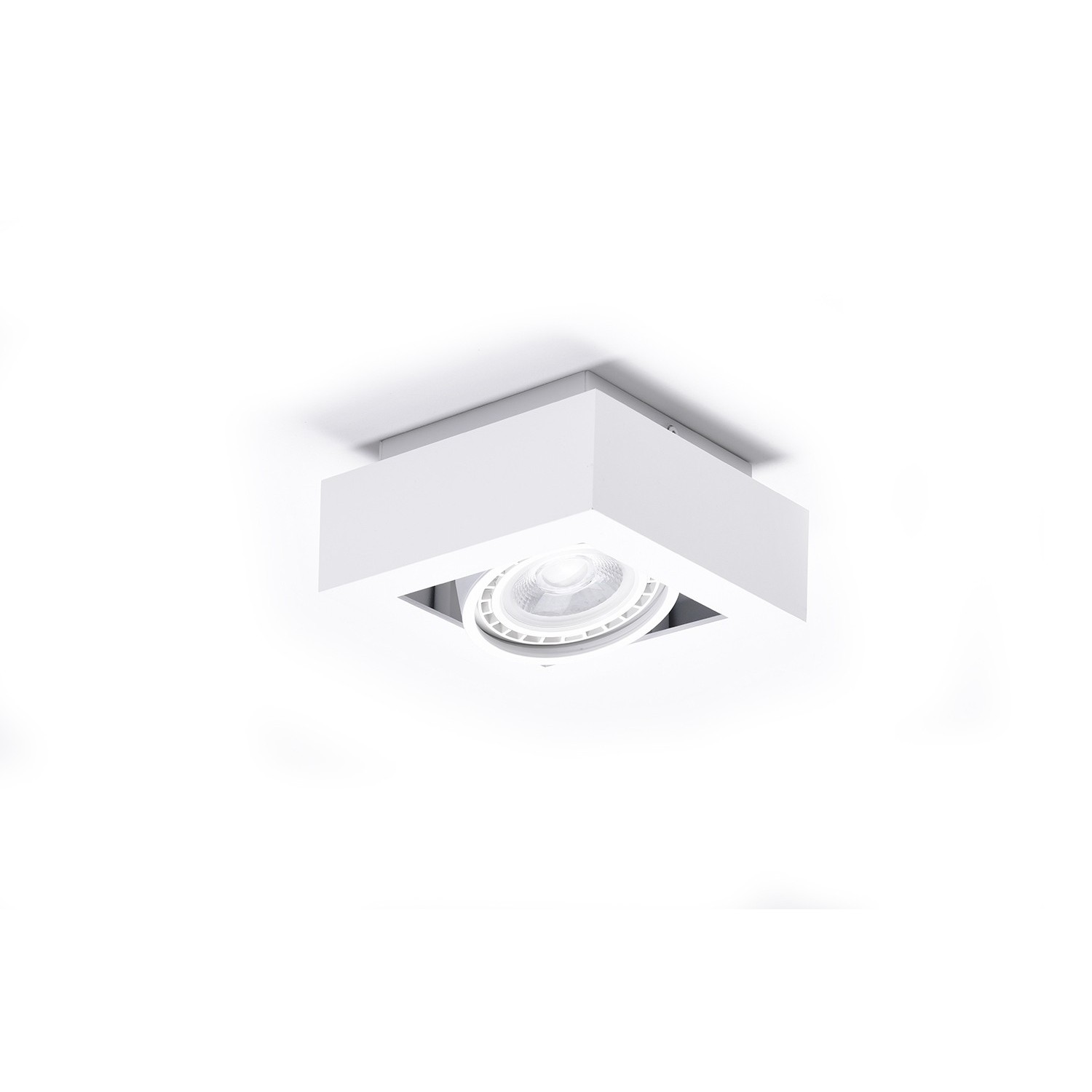 NIKEA 1 ES111 ma niewielką, kwadratową oprawkę, w której centrum znajduje się pojedyncze źródło światła. Całość ramki wykonano z trwałego metalu w trzech wersjach kolorystycznych (białej, czarnej lub czarno-białej). Lampy z rodziny NIKEA mogą być używane z energooszczędnymi źródłami światła LED.