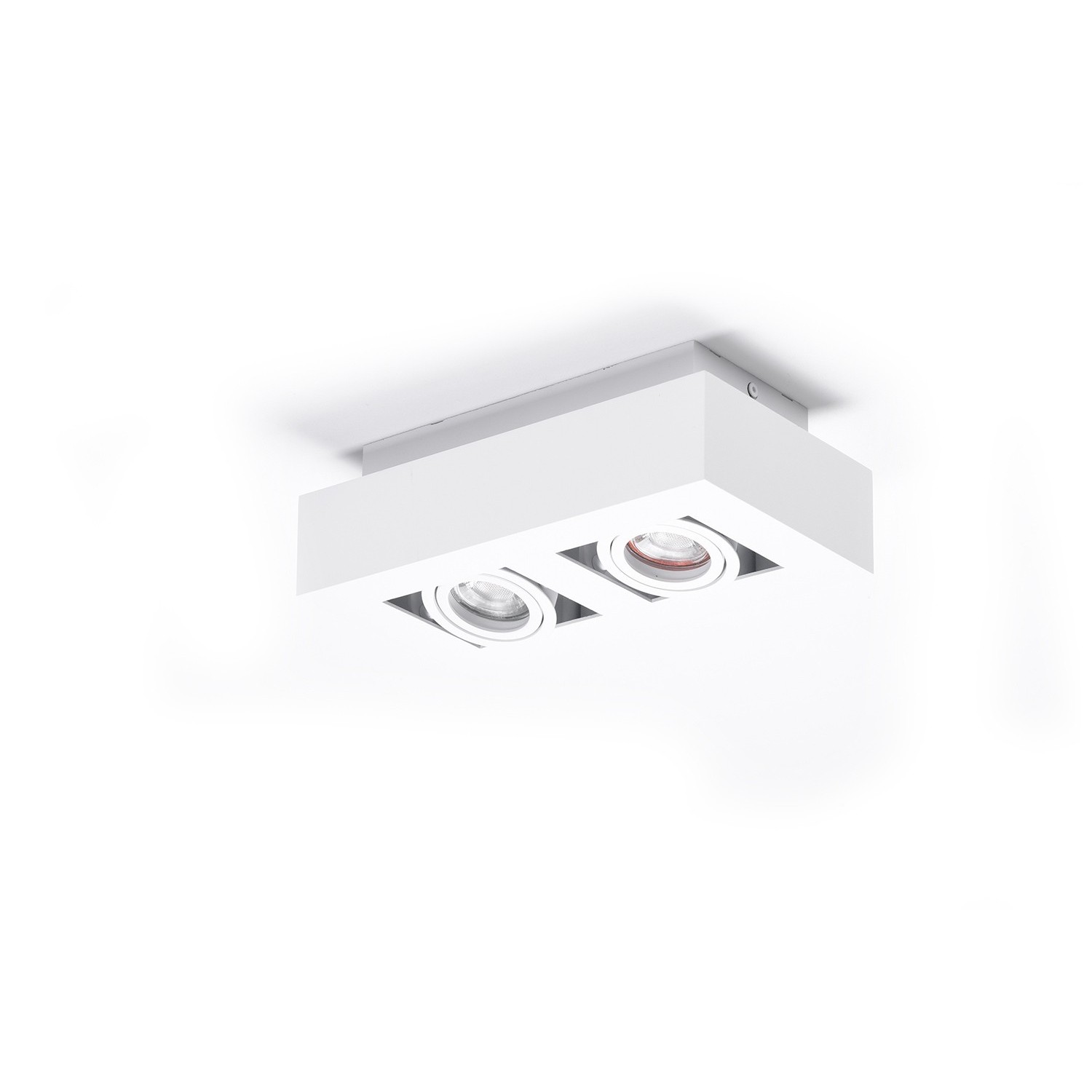 NIKEA 2 GU10 to wydłużona, prostokątna oprawka z metalu, w której obok siebie osadzono dwa ruchome źródła światła. Produkt występuje w naszej ofercie w trzech wersjach kolorystycznych – białej, czarnej, biało-czarnej.