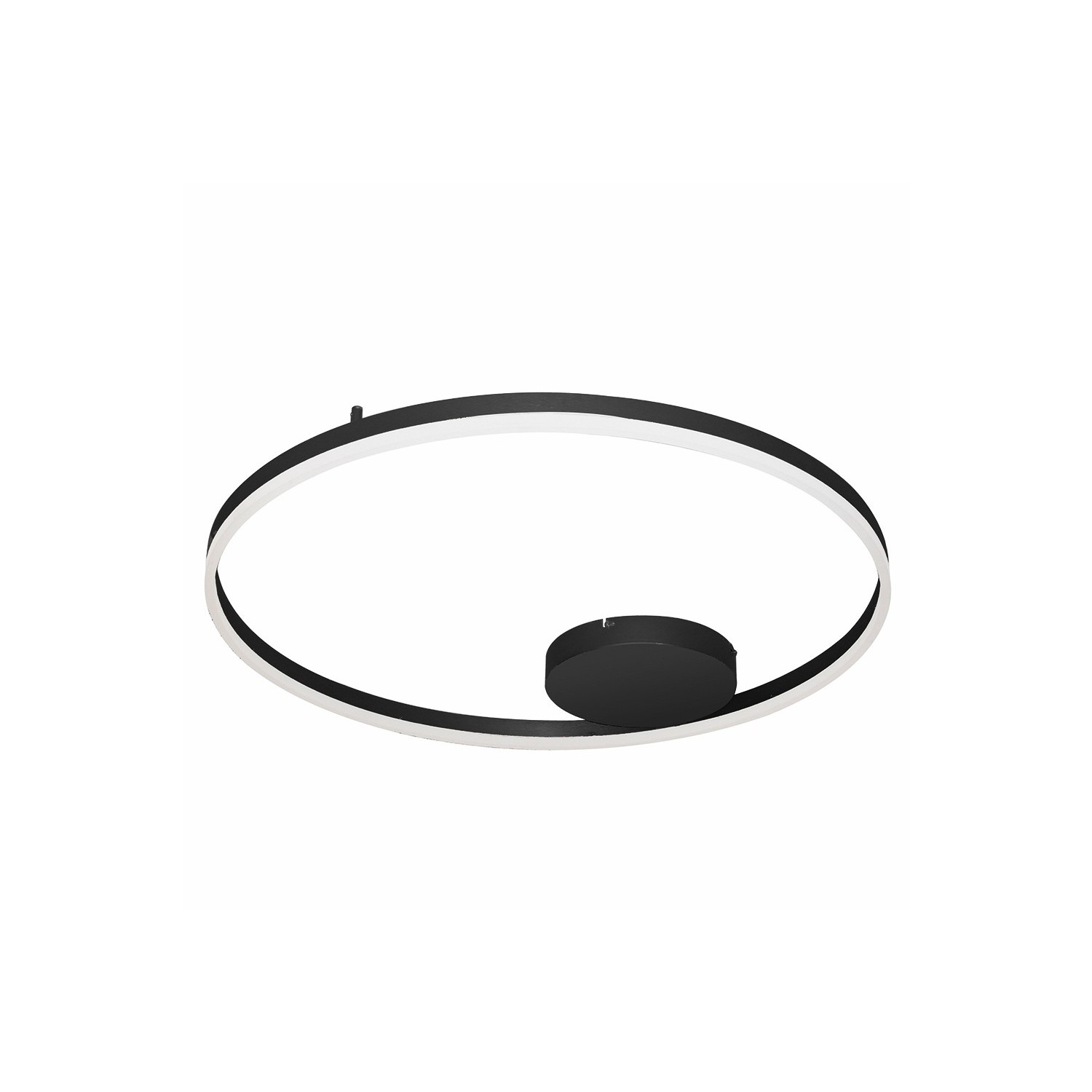 HALO 80 TOP składa się z dużego okręgu z metalu, przytwierdzonego do sufitu płaską, okrągłą podstawką. Na wewnętrznej stronie pierścienia zamontowano zintegrowane źródło światła LED, okryte osłoną z mlecznobiałego akrylu. W ofercie Azzardo lampa występuje w dwóch wersjach barwnych – czarnej i złotej.