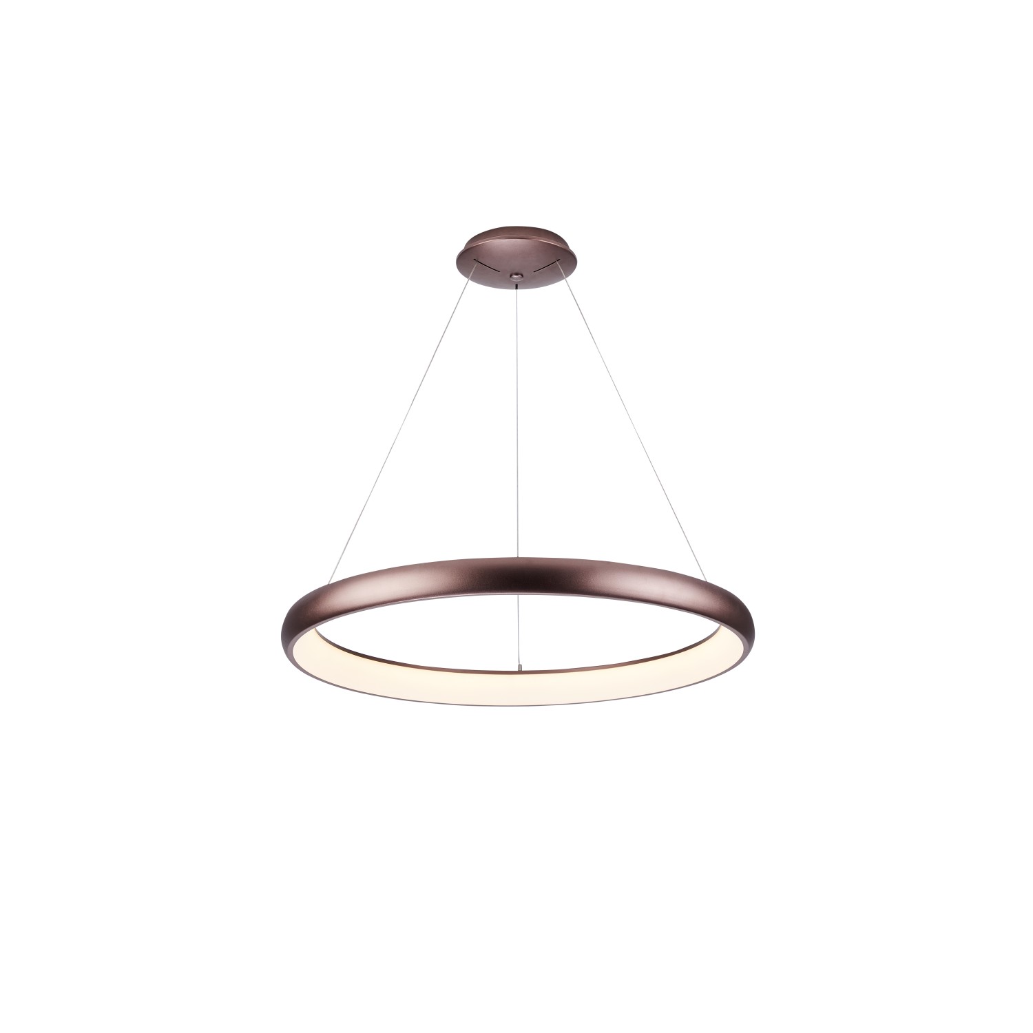 ANTONIO PENDANT 41 CCT CO to szeroki, metalowy pierścień na długich przewodach. Osadzono w nim zintegrowane źródło światła LED, o dużej żywotności, które okrywa mlecznobiała, akrylowa osłonka. Konstrukcja występuje natomiast w trzech wersjach kolorystycznych: brązowej, złotej lub czarnej, co ułatwia wprowadzenie lampy do różnych wnętrz.